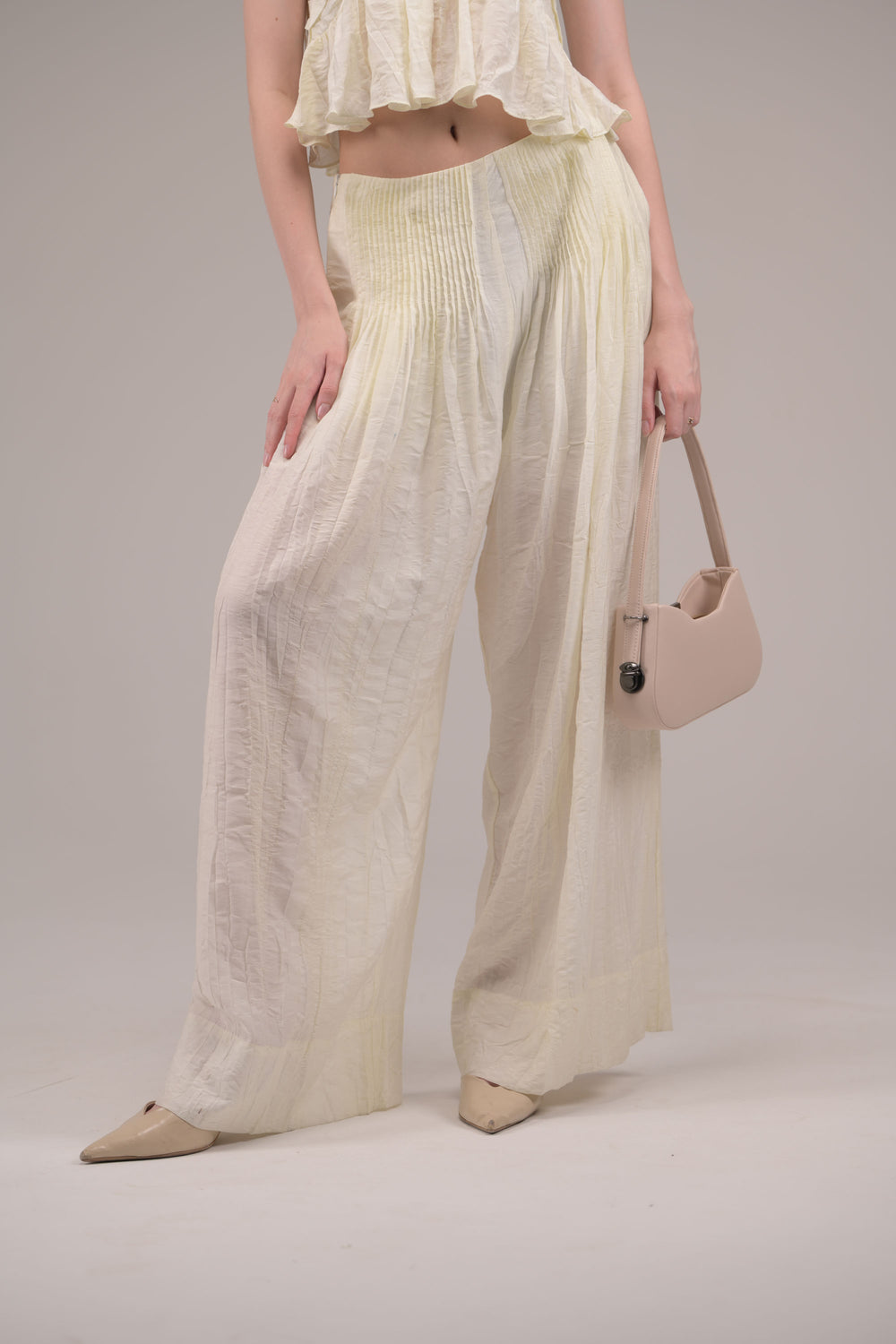 The Vanilla Breeze Co-ord is a light and elegant set crafted for a fresh, airy look. Designed with a relaxed fit, it features a soft, flowy top paired with wide leg bottoms that move effortlessly with you. The subtle vanilla tone adds timeless charm, making it perfect for brunches, vacations, or casual chic outings. Comfortable yet stylish, this co-ord is a go-to for an easy, sophisticated vibe.
